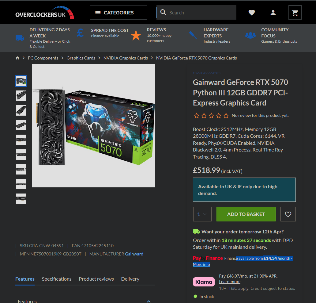 A GeForce RTX 5070 graphics card from Gainward has dropped below MSRP at a UK reseller, now retailing for £518.99 ($677), saving you around 10 pounds compared to Nvidia’s revised MSRP (via KitGuru). And if you’re waiting for the apparent gotcha, there is none. UK and IE residents can snag this model from OCUK as we speak. This sudden price drop could be part of a flash sale, so we shouldn’t take this isolated listing as indicative of the entire market.