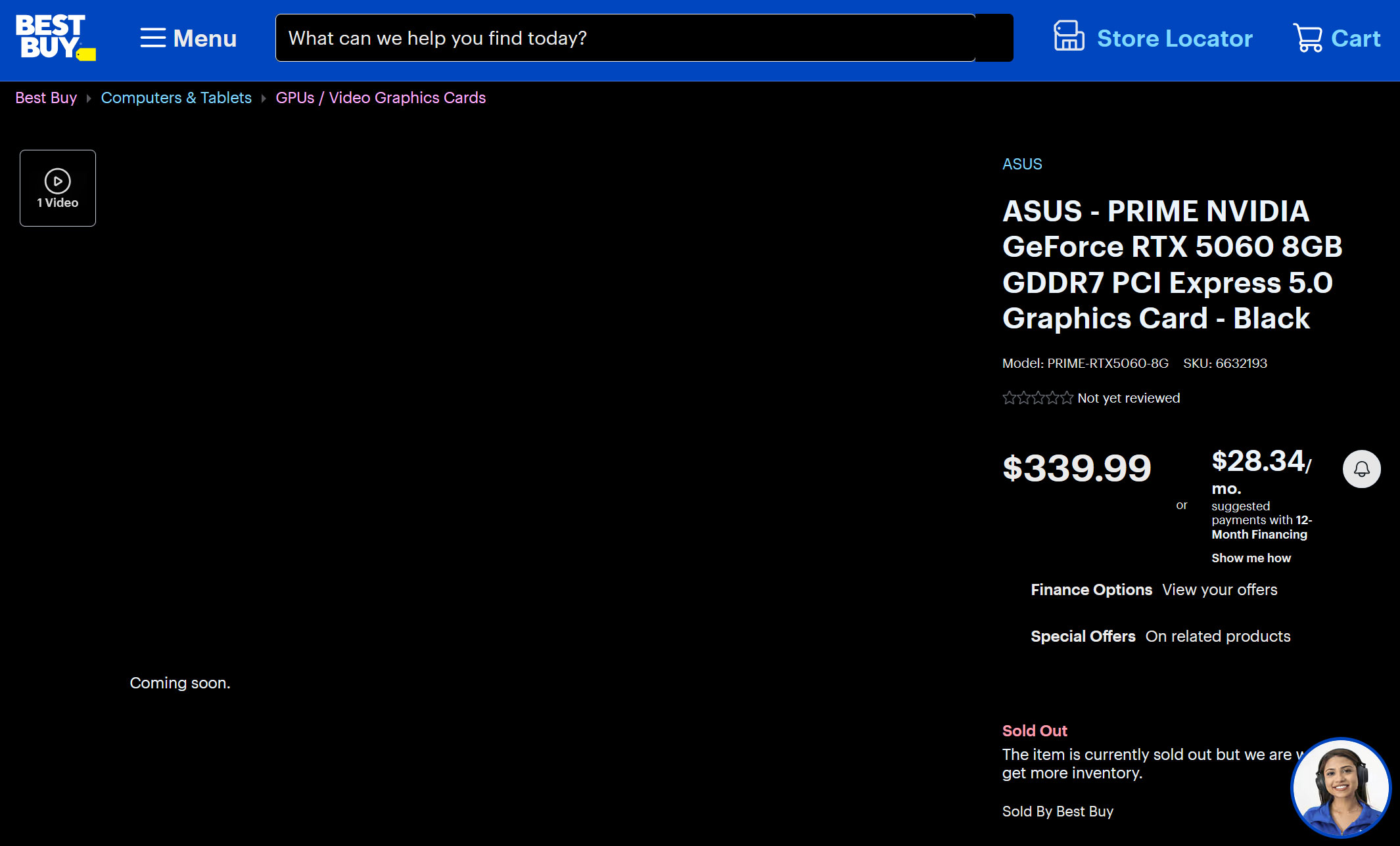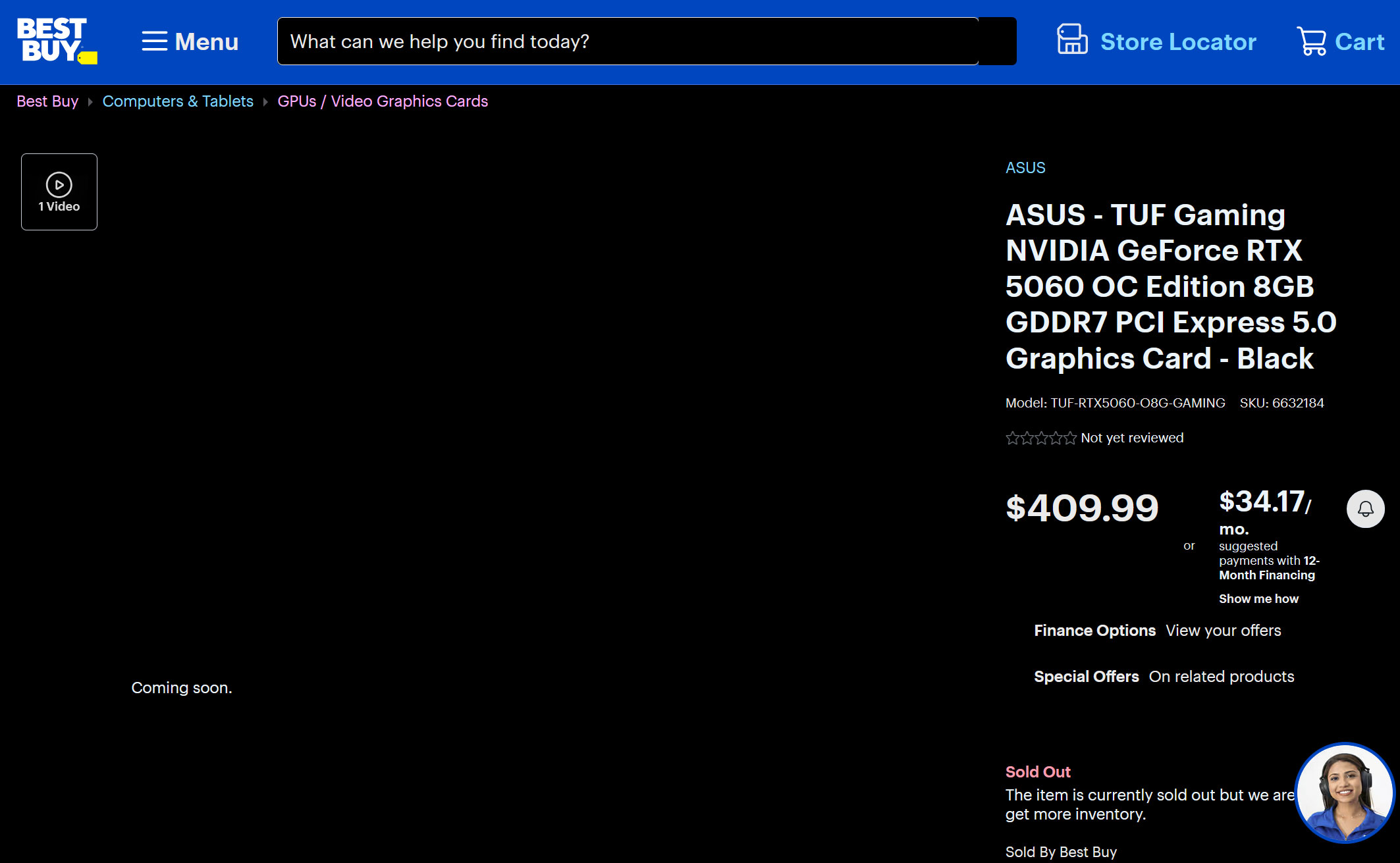 A trio of Asus GeForce RTX 5060 graphics cards has been listed at Best Buy in the U.S. (h/t momomo_us). These RTX 5060 retail pages appear to have been published a week too early. Perhaps more importantly, they are coming in at prices significantly above the touted $299 starting price, ranging between $340 and an eye-watering $410.