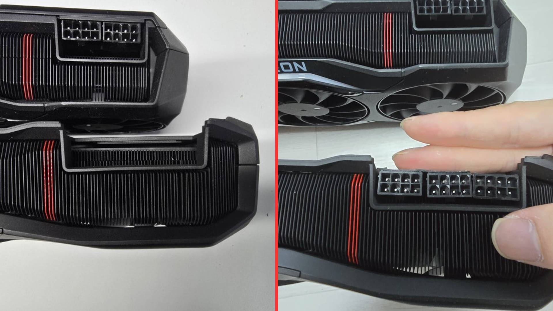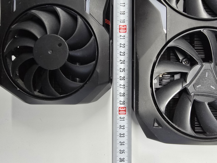 The prototype measures almost 34 cm in length compared to 29 cm for the RX 7900 XTX, and is nearly 5.5 cm thick, taking up three slots with a triple-fan configuration. It has slightly different cutouts for LEDs as well, but it largely looks the same aesthetically.