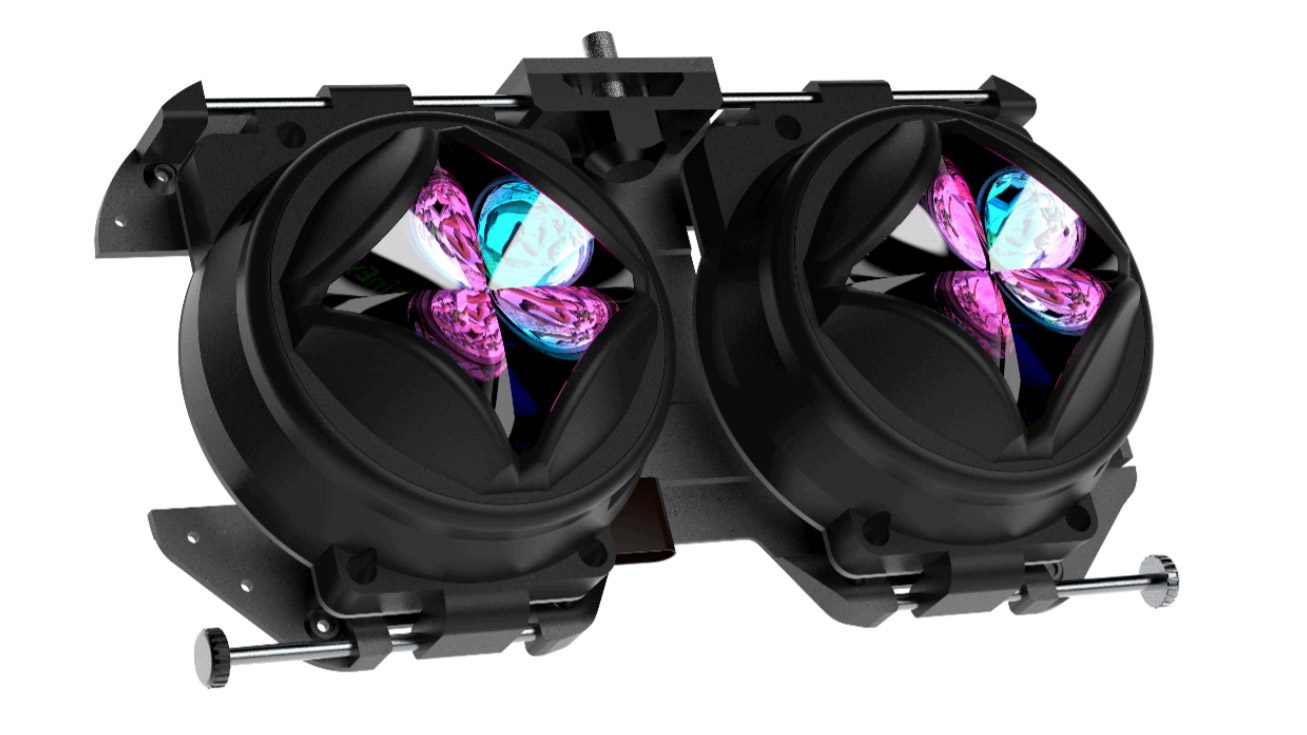 Lynx R-1’s unique “4-fold catadioptric freeform prism” optics allow for a compact focal length, putting the displays flush with the lenses and providing a 90-degree field of view (FOV). While pancake lenses are generally thinner and lighter, R-1’s optics have comparably better light throughput, which is important for mixed reality tasks.