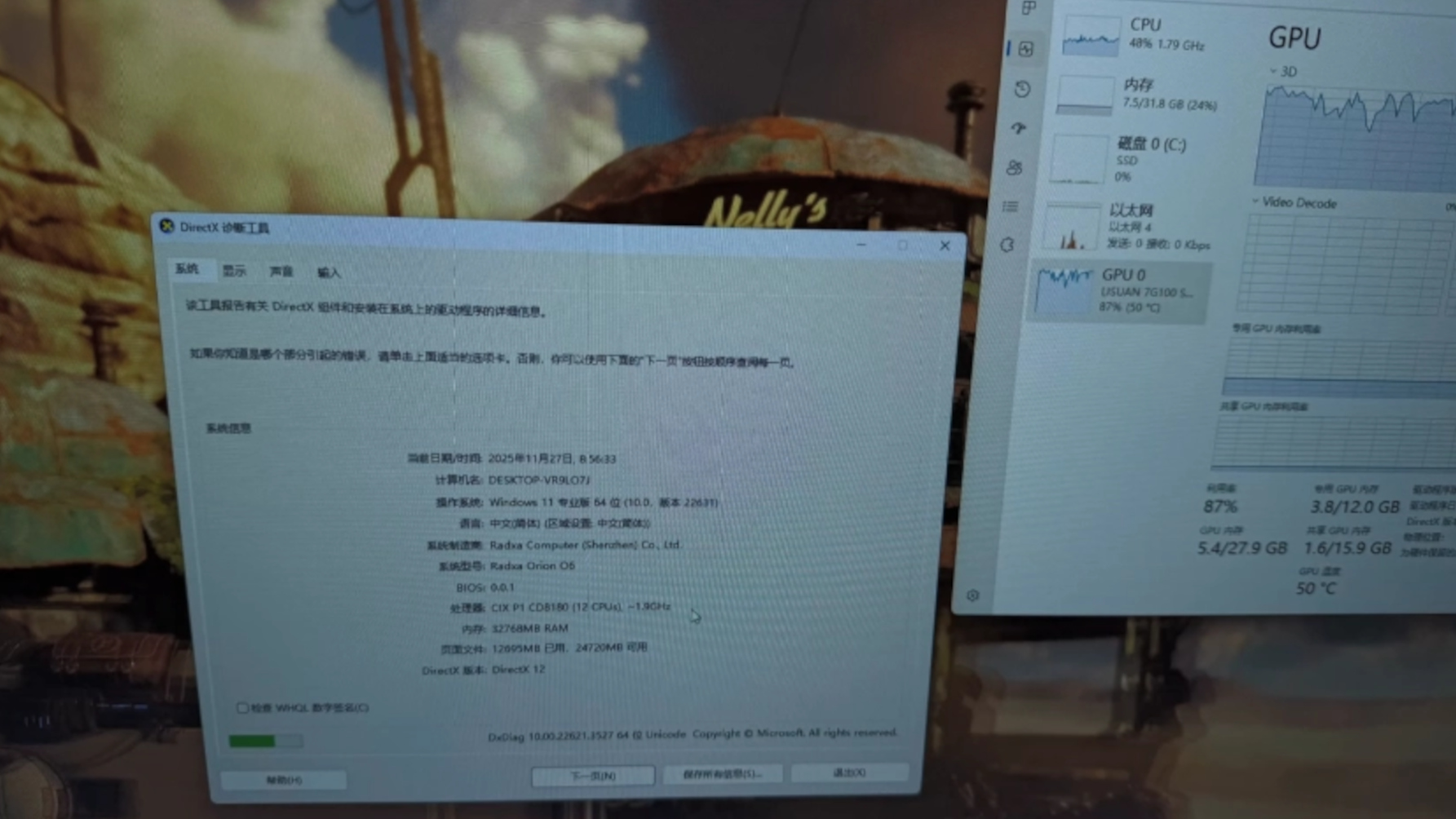 A video on Bilibili showed a Lisuan 7G106 graphics card hooked up to an ARM-based system featuring an ARM-based 12-core CP8180 CPU. The video showed the system running 3DMark’s Steel Nomad benchmark along with Task Manager on top, showing that the GPU clearly has 3D acceleration support within the ARM version of Windows 11. Furthermore, dxdiag was also shown to reveal DX12 support in the driver.